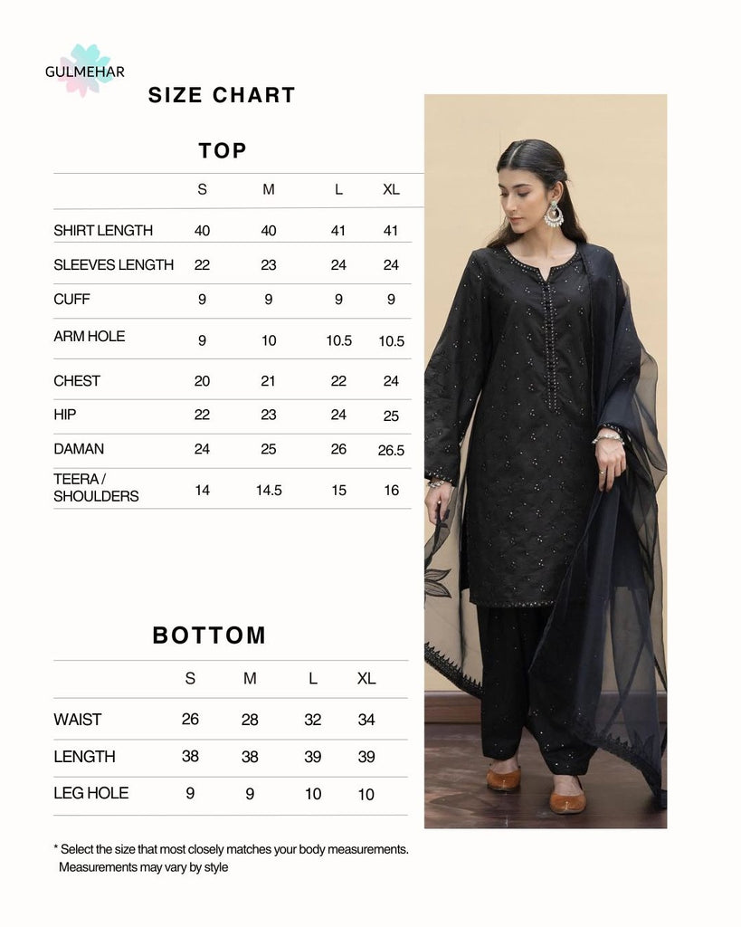 where timeless elegance meets delicate craftsmanship. ‘Koyal’ is adorned with self embroidery and silver sequins on soft lawn cotton, paired with a sheer embroidered dupatta. A graceful ode to the night, perfect for those who speak in silences and shine in subtleties."