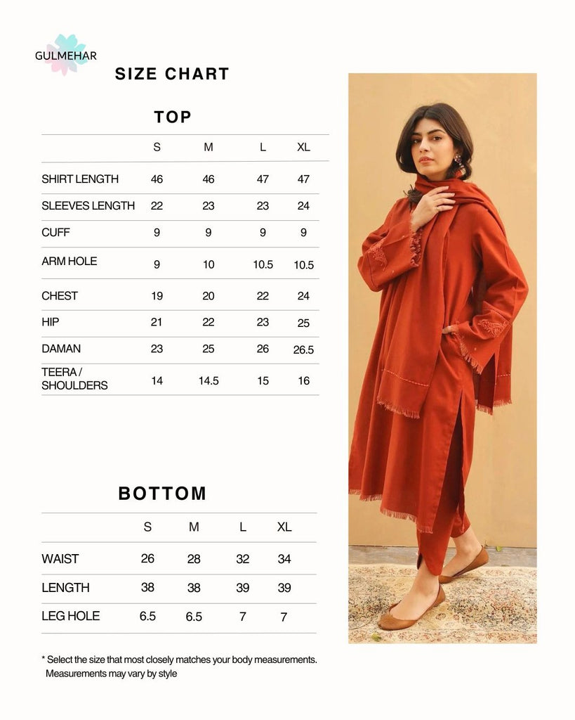 Discover the refined beauty of CORAL, a sophisticated ensemble crafted entirely from soft, cozy and premium Dhanak fabric. The kameez and dupatta both feature delicate embroidery, creating a harmonious look that exudes elegance and warmth.