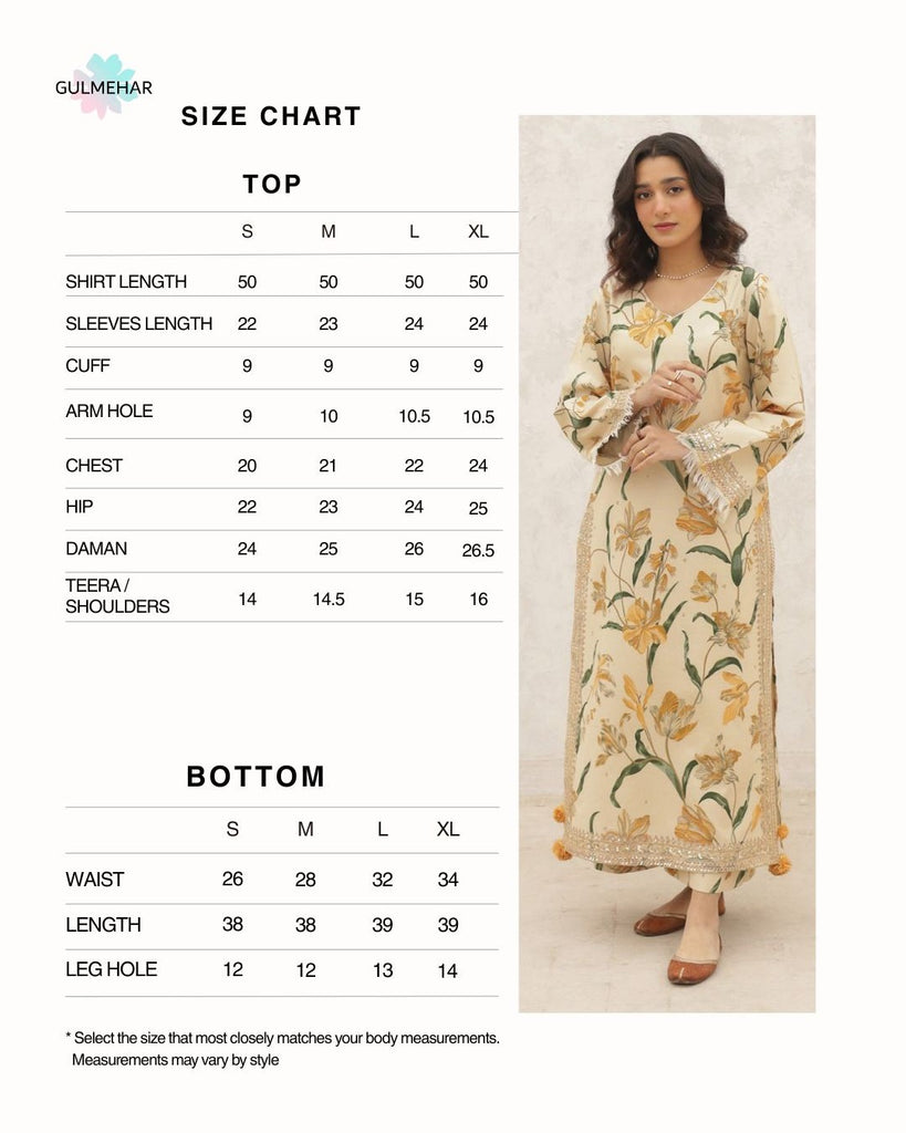 Embrace the vibrant charm of MARIGOLD, a chic 2-piece suit crafted from premium Slub Khaddar fabric Expertly crafted with delicate gold tilla embroidery on the side hems and sleeves. The rich material ensures comfort and STYLE, making it perfect for winter events and gatherings. With its bold hue and classic design, MARIGOLD effortlessly combines elegance and comfort, ideal for both casual outings and semi-formal gatherings.