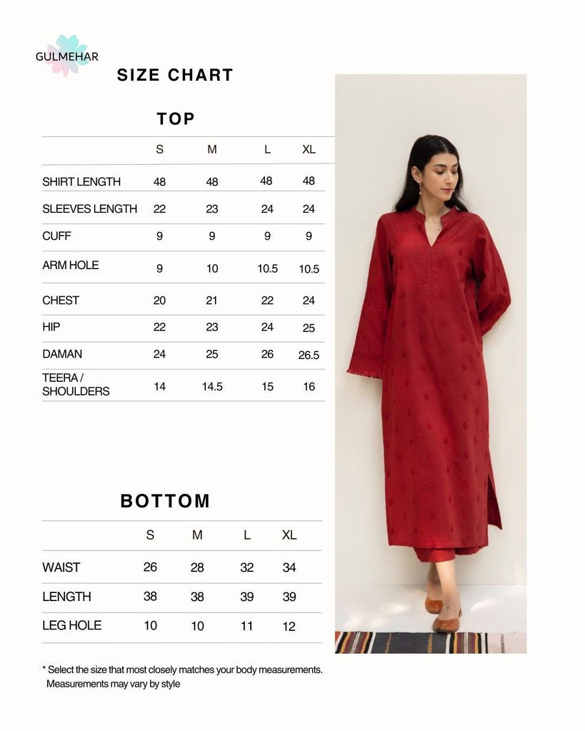 SCARLET, a stunning piece crafted from rich Premium Slub Khaddar fabric, showcasing exquisite heavy embroidery work long shirt paired with box trousers. The vibrant hue and intricate detailing create a striking silhouette, perfect for adding a touch of elegance to your wardrobe. Ideal for both casual and formal occasions, SCARLET effortlessly combines comfort and style, making it a must-have for any fashion-forward individual.